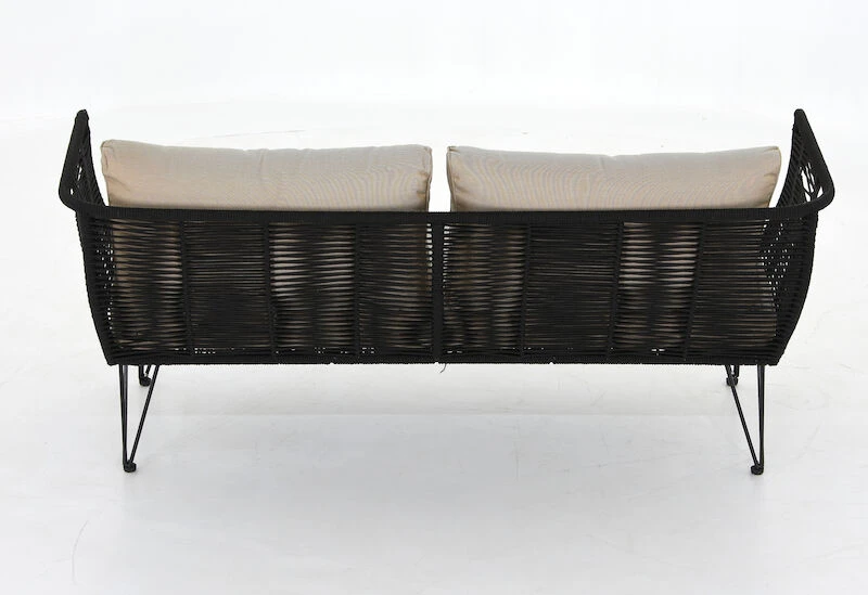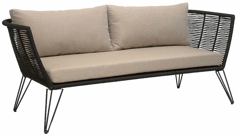 Kepeä ja linjakas Bloomingville Mundo 3-istuttava sohva ulkotiloihin. Jalat on mustaksi maalattua terästä ja punos polyesteristä käsinkudottua köyttä. Pehmusteiden kangasmateriaalina on 100 % polyester. Kankaassa kaunis tekstuuri. Säänkestävät materiaalit. Sohvan maksimi painoraja on 200 kg. Istuin- ja selkätyynyjen päälliset ovat irroitettavissa vetoketjun avulla, sekä pestävissä 30 asteen konepesulla. Kuvassa näkyvät nojatuoli ja sohvapöytä ovat ostettavissa erikseen.