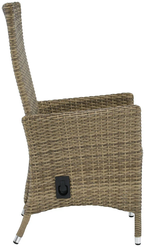 Atlanta säätötuolissa on portaattomasti säädettävä selkänoja. Atlanta tuoli on laaukas ja siinä istut mukavasti niin terassin ruokapöydän äärellä kuin auringossakin. Runko on ruostumatonta alumiinia.