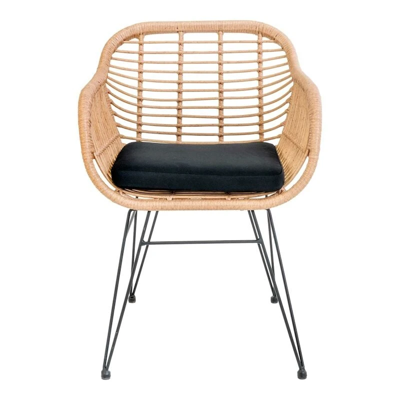 Kaunis ja trendikäs House Nordic Trieste nojatuoli mustalla, irroitettavalla pehmusteella. Rungon materiaalina on teräs, istuinosa on helppohoitoista polyrottinkipunosta. Sirot metallijalat yhdistettynä kepeään istuinosaan tekevät tuolista ilmavan ja kevyen. Sijoita esimerkiksi ruokapöydän ympärille tai pienen sivupöydän pariksi niin parvekkeelle, terassille kuin patiollekin.
