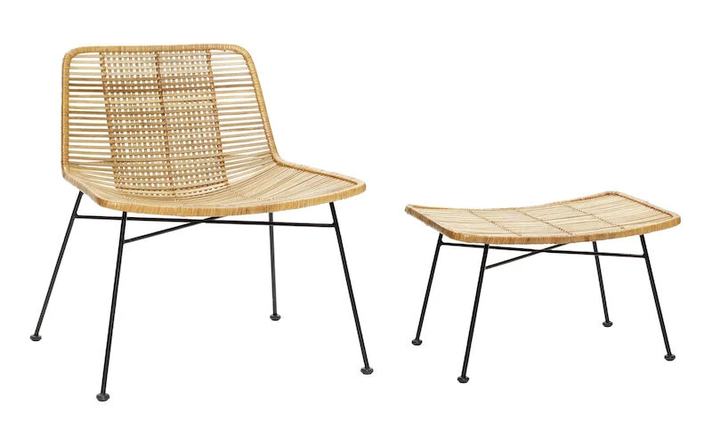 Ihana ja kepeä Hübsch rottinkituoli jonka runko on kestävää metallia jotka eivät naarmuta lattiaa. Kaveriksi talja tai huopa sekä hyvä kirja! Materiaalinsa ansiosta soveltuu hienosti myös vaikka pukuhuoneeseen saunan jälkeiseen rentoutumiseen. Tuolin mitat: L61 x S62 x H71, rahin mitat: L61 x S43 x H37cm.