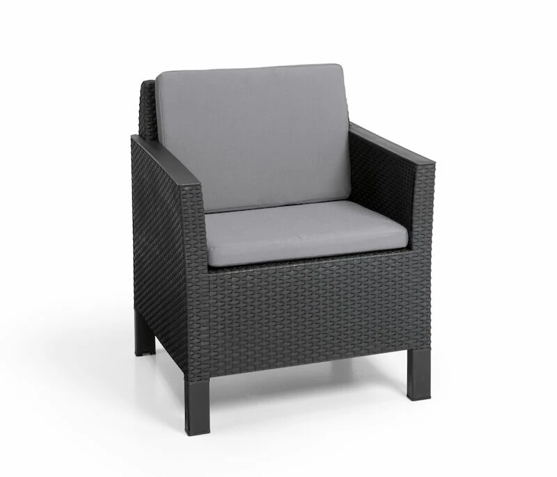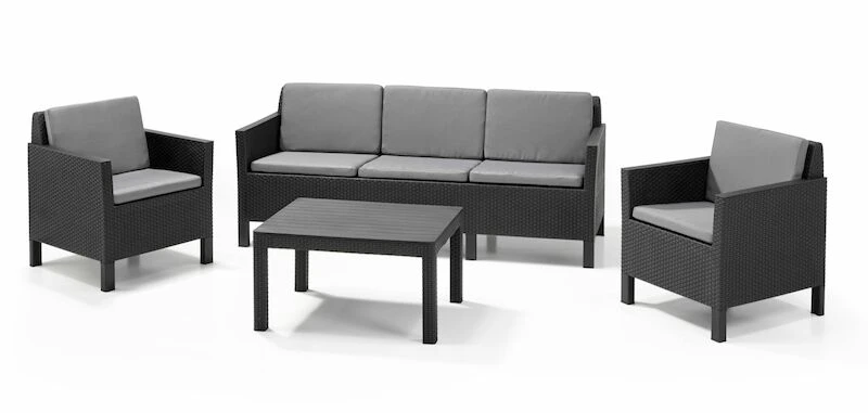 Chicago-sohvaryhmä tuo eleganssia ja mukavuutta ulkotiloissa oleskeluun muuntaen terassin täydellieksi oleskelutilaksi. Pakettiin kuuluu kolmen istuttavan sohvan lisäksi pöytä sekä kaksi nojatuolia sekä istuinpehmusteet. Pehmusteet hylkivät vettä, ne on silti hyvä säilyttää sateisina aikoina säältä suojassa. Tarkat mitat löytyvät tuotekuvista. Tämän kevyen kaluston liikuttelu on vaivatonta ja kokoaminen helppoa mukana tulevien ohjeiden ja tämän videon avulla: