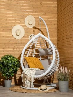 Veke Tupla Kahden Istuttava Riipputuoli Telineellä Luonnonväri/valkoiset Pehmusteet