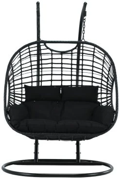 Veke Tie Kahden Istuttava Riipputuoli Jalustalla Musta, Musta Pehmuste