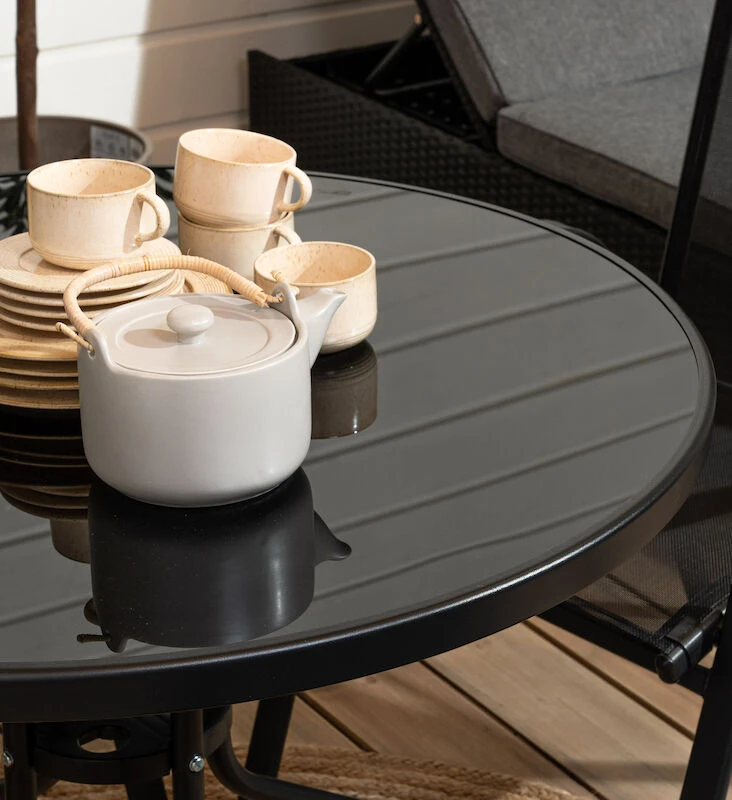 Veke Cafe-Feel Textline Pyöreä 4-hengen Ruokailuryhmä Musta