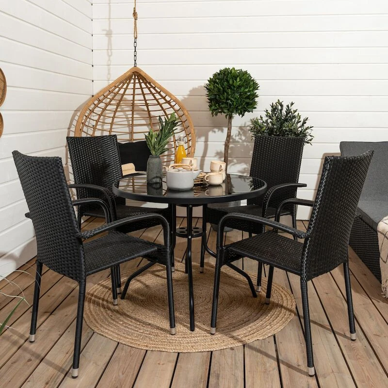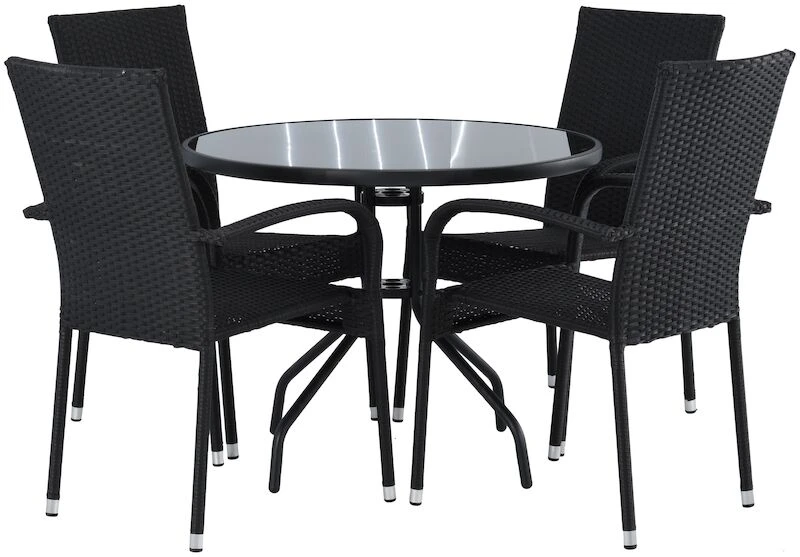Veke Cafe-Puro Pyöreä 4-hengen Ruokailuryhmä Musta