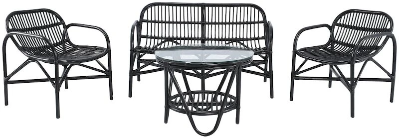 Klassinen aidosta rottingista valmistettu sohvaryhmä. Hinta sisältää sohvan, kaksi nojatuolia ja sohvapöydän. Sohvapöydän päällä on kirkas lasi. Rottinki on ekologinen luonnonmateriaali ja sen ominaisuuksiin kuuluu värivaihtelut ja tummemmat kohdat. Värivaihtelut, epätasaisuudet ja käsityön jälki tekevät jokaisesta rottinkituotteesta yksilöllisen. Rottinki patinoituu ajan saatossa. Rottinkinen sohvaryhmä on ajaton ja sopii loistavasti sisäkäyttöön, sekä katettuun ulkotilaan.