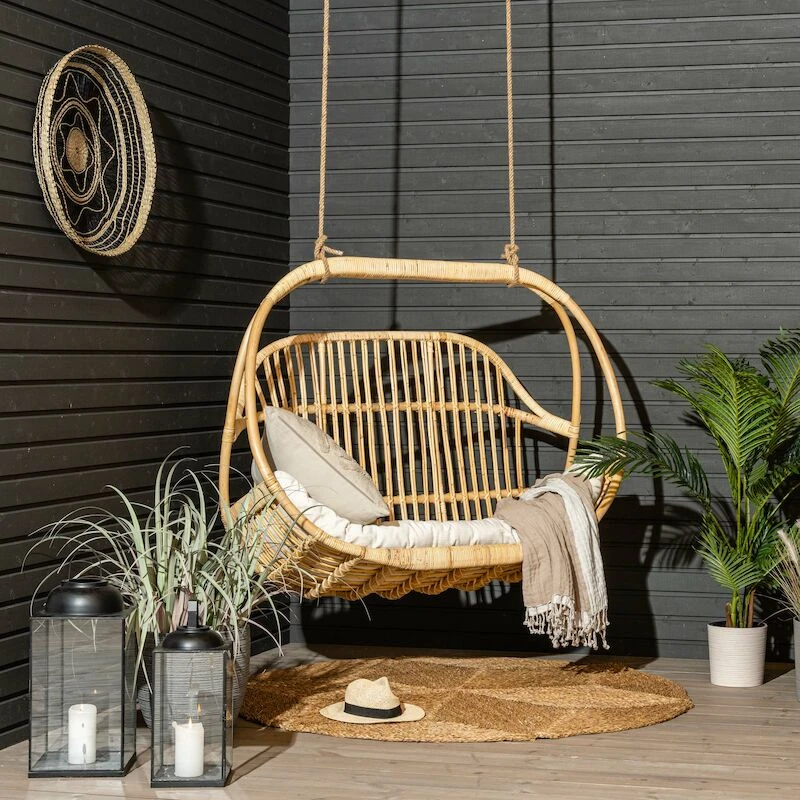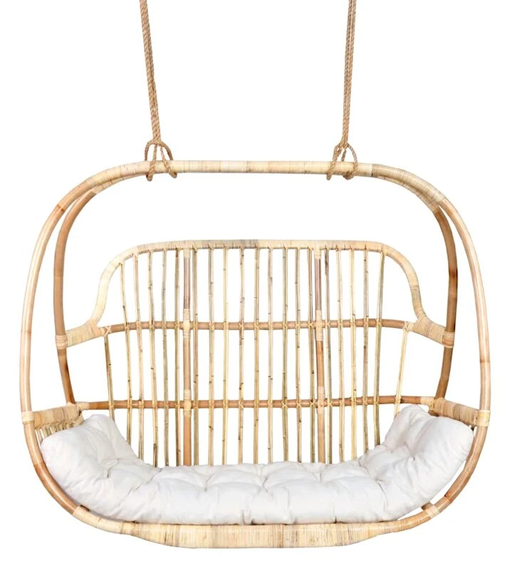 Mukavaan oleskeluun ajaton ja todella kaunis. Riippukeinussa on tilaa kahdelle hengelle. Sisältää vaalean istuinpehmusteen, joka on 100% polyesteriä, sekä ripustusköyden. Soveltuu sisäkäyttöön, sekä katettuun ulkotilaan. Tuote toimitetaan valmiiksi kasattuna pahviseen suojapaperiin käärittynä. Rottinki on ekologinen luonnonmateriaali ja sen ominaisuuksiin kuuluu värivaihtelut ja tummemmat kohdat. Värivaihtelut, epätasaisuudet ja käsityön jälki tekevät jokaisesta rottinkituotteesta yksilöllisen. Rottinki patinoituu ajan saatossa.