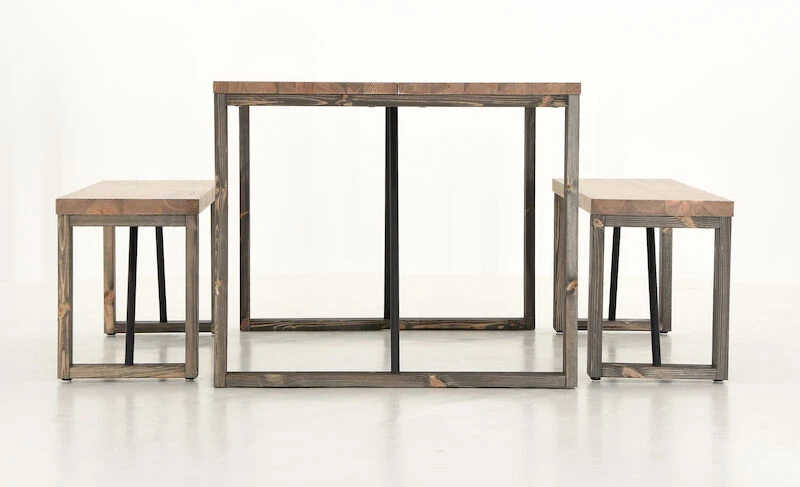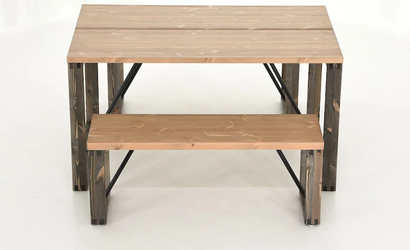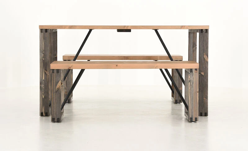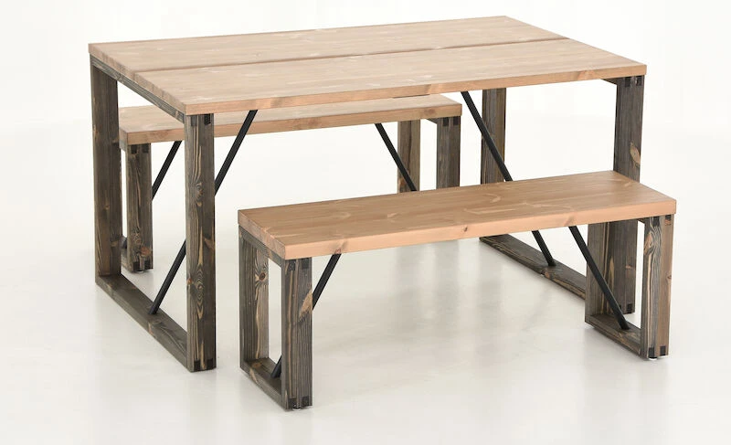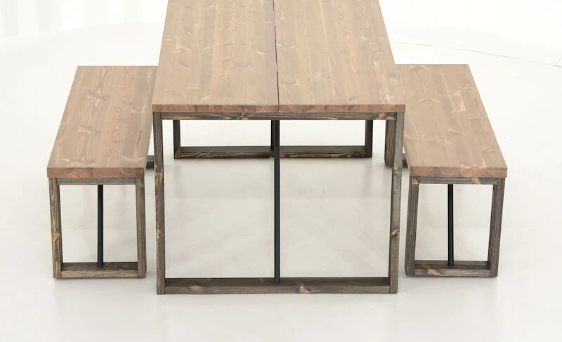 Tyylikäs ja näyttävä Honka ruokailuryhmä koostuu näyttävästä ruokapöydästä ja kahdesta penkistä puujaloilla. Honka lankkupenkin kansi on tehty kahdesta liimapuulankusta, paksuudeltaan 4 cm. Pöydän kansi on toteutettu samalla tavalla, mutta lankun paksuus on 3cm. Pöydässä ja penkeissä on tukevat puujalat sekä näyttävänä yksityiskohtana metallinen tukitanko. Tukitangot ruuvataan runkoon, mutta rungossa ei ole valmiina niille reikiä. Penkin ja pöydän lankut ovat oksaista mäntyä, joissa voi esiintyä luonnollisia halkeamia ja uria.