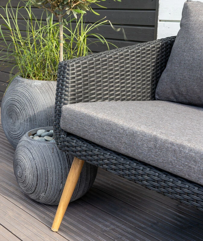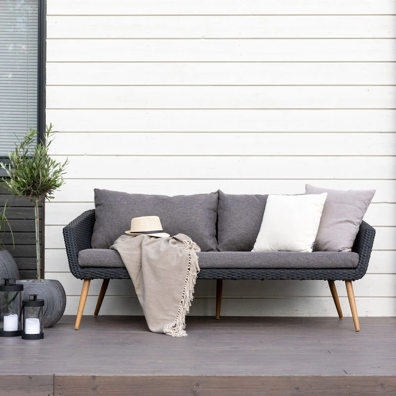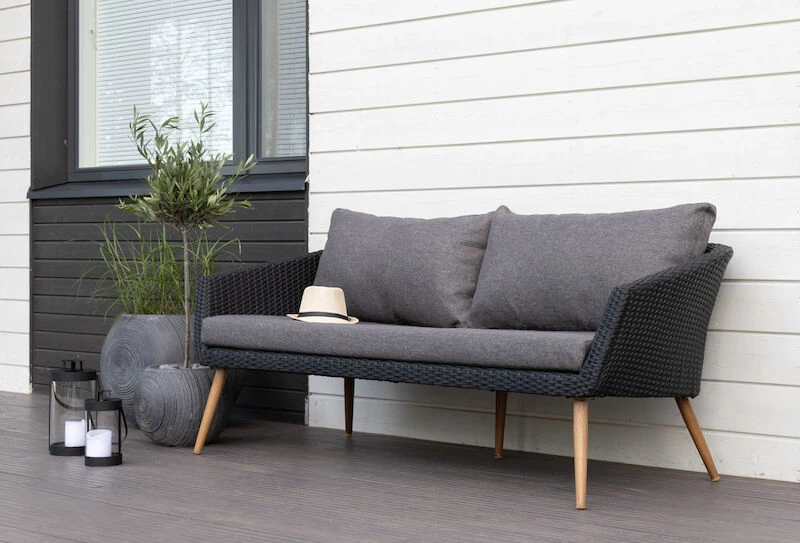 Kaisla on tyylikkään muotokielen omaava, ulkotiloihin tarkoitettu 3-istuttava sohva. Sohvan ilme on kevyt sirojen ja korkeiden jalkojen ansiosta. Myös selkänojan kaareva muoto keventää ilmettä. Puupintaisilta näyttävät jalat ovat maalattua alumiinia ja istuinosa polyrottinkia. Vaaleassa punoksessa on luonnollisia tummempia pisteitä, jotka kuuluvat tuotteen ominaisuuksiin. Pehmusteen materiaali 100% polyesteri. Sohvassa on takana keskellä tukijalka, joka jää hieman ilmaan, kun sohvalla ei istuta. Tukijalassa ei ole säätömahdollisuutta.