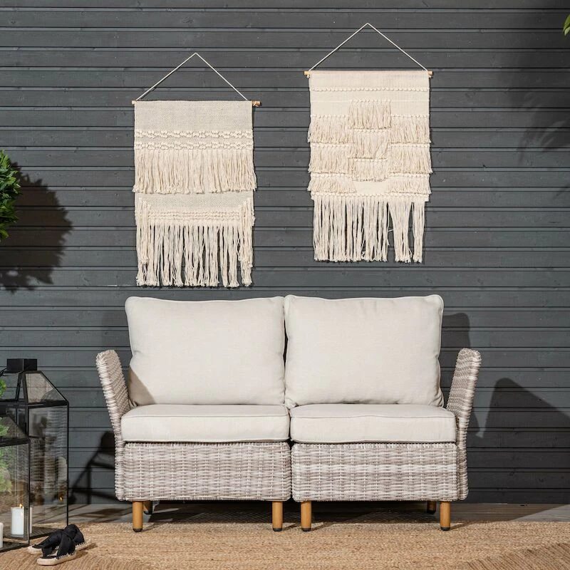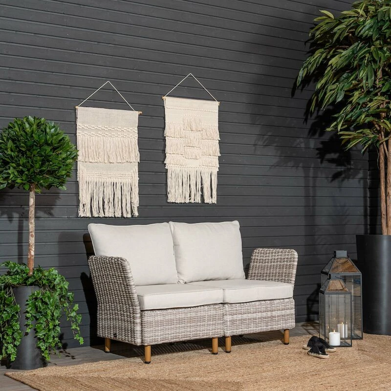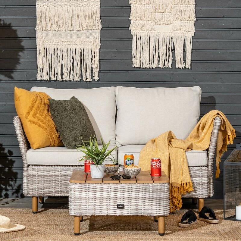 Kevyt, kestävä ja tyylikäs 2-istuttava ulkosohva koostuu Lehdokki tuotesarjan kahdesta moduulista ja käsinojista, jotka on kiinnitettynä toisiinsa kätevillä kiinnikkeillä. Sohvassa on muhkeat, raikkaan vaaleat pehmusteet, joiden päälliset on irroitettavissa ja pestävissä. Laadukas UV-suojattu kangas on vettä hylkivää, mutta suositeltavaa on kuitenkin suojata pehmusteet sateelta. Sohva tuo miellyttävää istumatilaa terassille ja siinä on mukava viettää kesäpäiviä. Ostamalla lisää moduuleja , saat laajennettua sohvaa helposti suuremmaksi tarpeen mukaan.