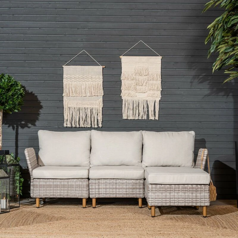 Laadukas ja tyylikäs divaanisohva koostuu Lehdokki tuotesarjan moduuleista, jotka on kiinnitettynä toisiinsa kätevillä kiinnikkeillä. Kätisyys on helposti vaihdettavissa moduulien paikkoja vaihtamalla. Sohvassa on muhkeat, raikkaan vaaleat pehmusteet, joiden päälliset on irroitettavissa ja pestävissä. Laadukas kangas on vettä hylkivää, mutta pehmusteet on kuitenkin suositeltavaa suojata sateelta. Sohva on ihana ja rento paikka kesäpäivien viettoon. Ostamalla lisää moduuleja , saat laajennettua tuotetta helposti ja muunneltua kokonaisuutta eri näköiseksi.