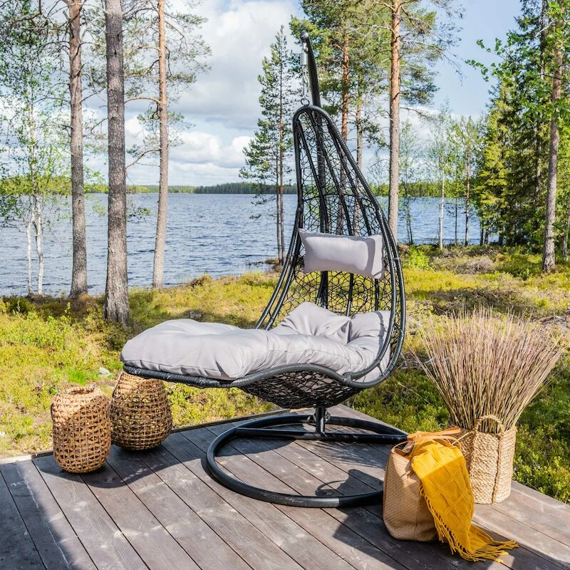 Lepo riipputuoli sopii nimensä mukaisesti täydellisesti rentoihin lepohetkiin terassilla ja pihamaalla. Voit sijoittaa riipputuolin juuri haluamaasi paikkaan telineen ansiosta. Sisältää muhkean istuinpehmusteen 75×162 cm ja niskatyynyn 49×19 cm. Istuinkorkeus säädettävissä 27-50 cm välillä.