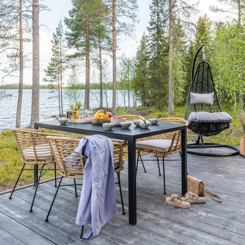Veke Saarni Aintwood Ruokailuryhmä Penkeillä 6-hengen Musta/harmaa