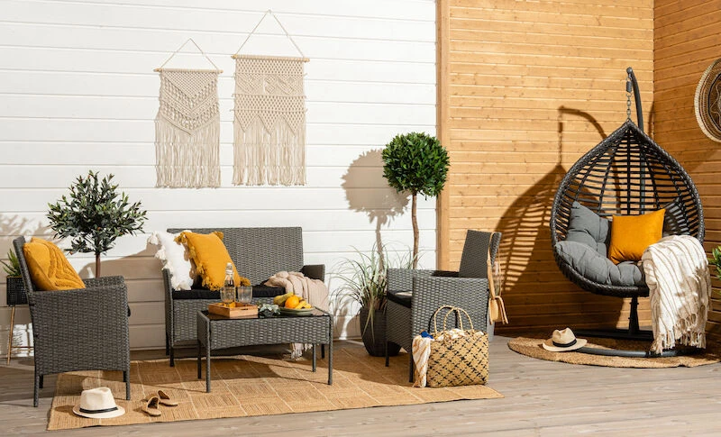 Pehmusteille vain kuivapesu. Pyyhi lika riippukeinusta laimealla saippualiuoksella. Tuote ei sovellu vesisateeseen (rautarunko). Kiristä jalustan ruuveja säännöllisin väliajoin (1 kk). Aseta jalustan pohjaan huopatarrat naarmujen välttämiseksi. Älä keinu riippukeinussa sivusuunnassa. Riippukeinu on tarkoitettu vain istumiseen. Talvisäilytys kuivassa ja ilmavassa tilassa