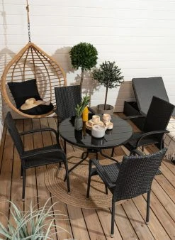 Veke Saarni Aintwood Ruokailuryhmä Penkeillä 4-hengen Musta/harmaa