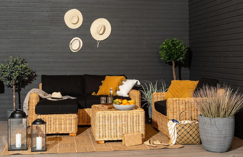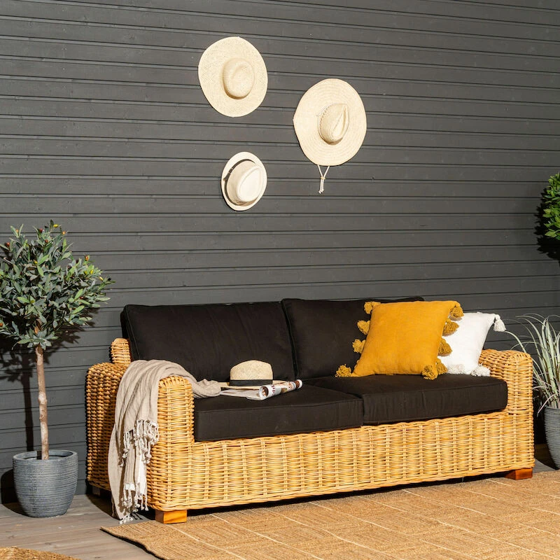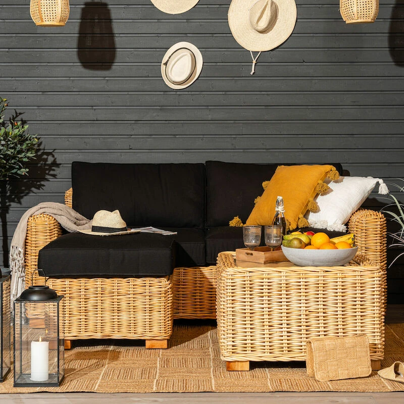 Veke Vorona 3-istuttava Rottinkisohva Luonnonväri/musta Pehmuste