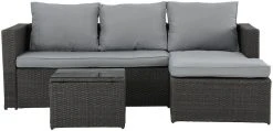 Vila Orust 3-istuttava sohva on polyrottingista valmistettu, tukeva ja laadukas sohva. Runkona kestävä alumiini, punoksena harmaa polyrottinki. Polyrottingin pinta ei ole sileä, vaan se on harjattu, jotta se muistuttaisi enemmän oikeaa rottinkia. Mukaan tulee paksut, harmaat pehmusteet, jossa vettähylkivä kangasverhoilu, materiaali polyesteria. Yhdistä muihin Vila Orust-sarjan tuotteisiin. Istuintyynyn koko: 58x70x10 cm ja selkätyynyn 56x43x20 cm.